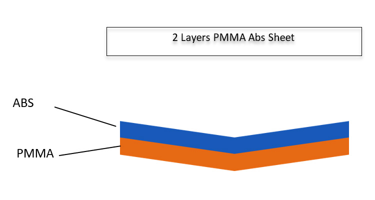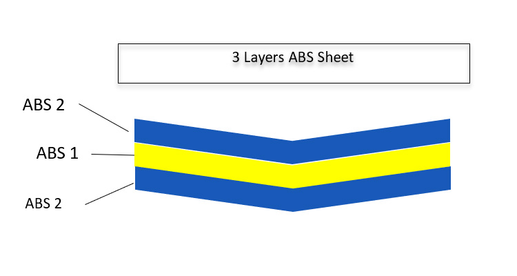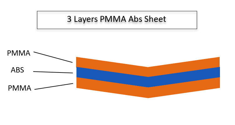 از یک لایه ABS با رنگ طبیعی، یک لایه کامپاند ABS و PMMA به جهت افزایش چسبندگی لایه ی ABS/PMMA در نهایت یک لایه PMMA به منظور براقیت و اثبات رنگ محصول استفاده می‌شود.